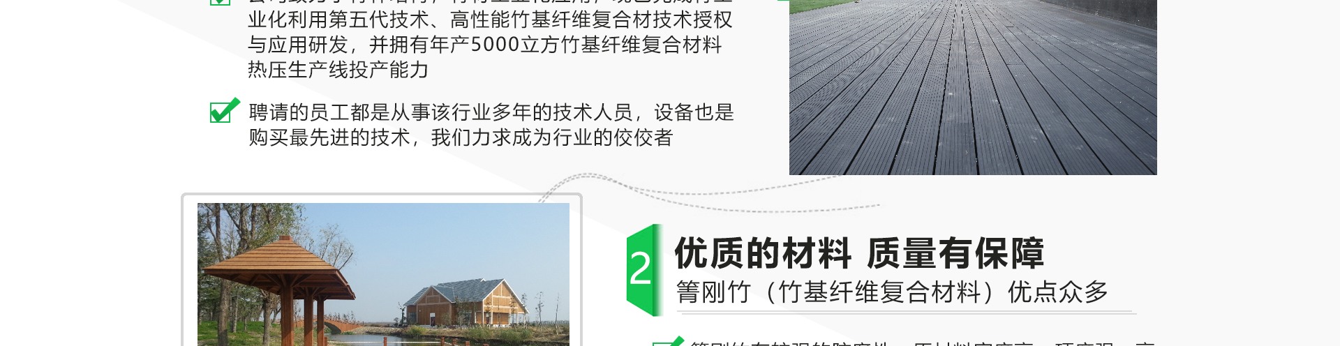 宣城宏宇竹業(yè)有限公司位于“華夏毛竹首鎮(zhèn)”的安徽省宣城市涇縣蔡村鎮(zhèn),公司致力于竹材工業(yè)化應(yīng)用與研發(fā),已完成竹工業(yè)化利用第五代技術(shù)-竹基纖維復(fù)合材技術(shù)應(yīng)用研發(fā),并獲得2015年度國家科技進(jìn)步獎(jiǎng)二等獎(jiǎng)。公司擁有行業(yè)幅面3850*1320mm的5400噸壓力的20層熱壓機(jī),可以直接壓制3850*1180*52的坯板,具備年產(chǎn)10000立方米的生產(chǎn)能力。宏宇竹業(yè)以“領(lǐng)導(dǎo)竹材恒久價(jià)值”為己任,以匠心的工藝,銳意進(jìn)取的管理團(tuán)隊(duì)打造一個(gè)產(chǎn)品多樣化、市場(chǎng)多元化的科技型企業(yè)。公司從成立之初一直重視品牌建設(shè),公司注冊(cè)商標(biāo)“箐剛“竹,致力打造戶外竹材優(yōu)異品牌,讓宏宇竹業(yè)深入每一個(gè)消費(fèi)者的心。